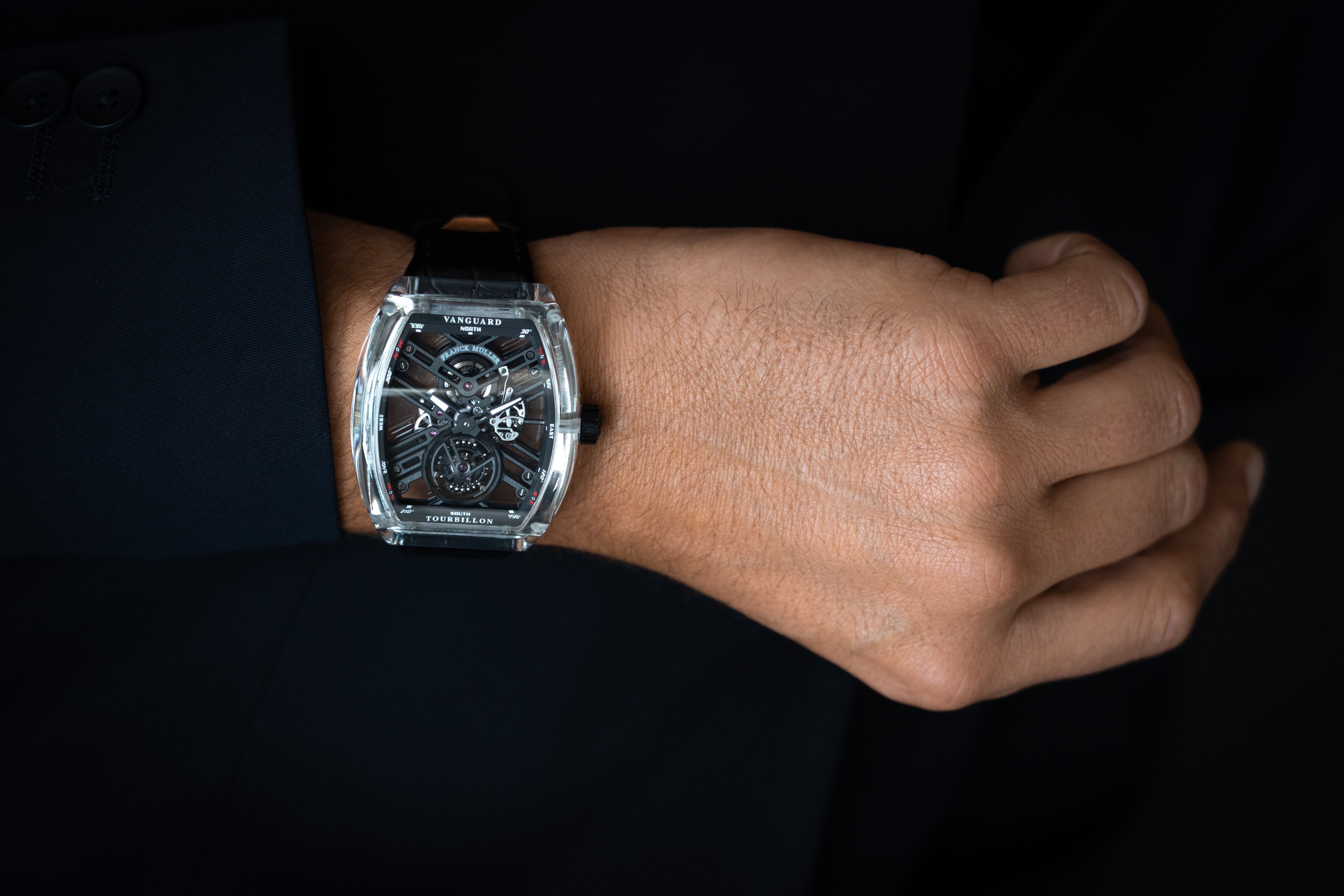 Franck Muller has expanded the use of this material beyond the crystal and now offers options for a clearly superb option in the Vanguard series.